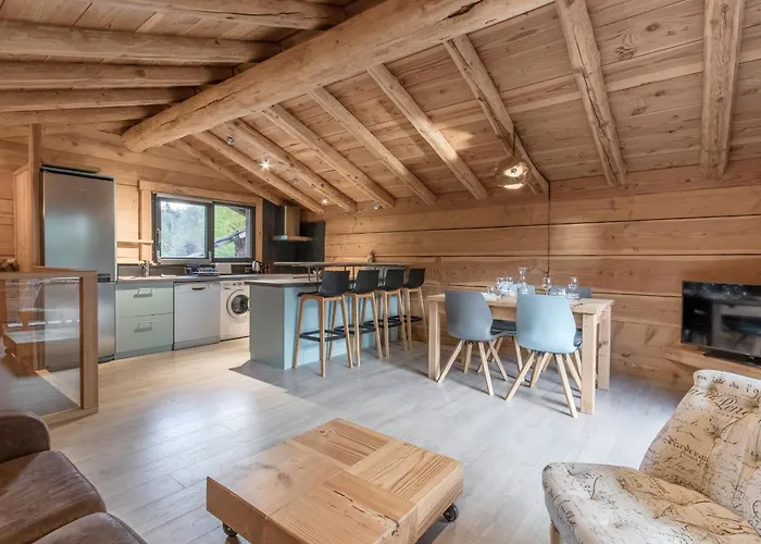 Apartmán Apartmán Le Grand Champs - Chalet Prive Avec Terrasse Et Vue nabízí kompletní kuchyni i pokoje s přístrojem na přípravu kávy a čaje, místností na posezení, televizí. Apartmán je umístěn 800 metrů od Sportovní komplex Richarda Bozona, a MBC sousedí s ubytováním.